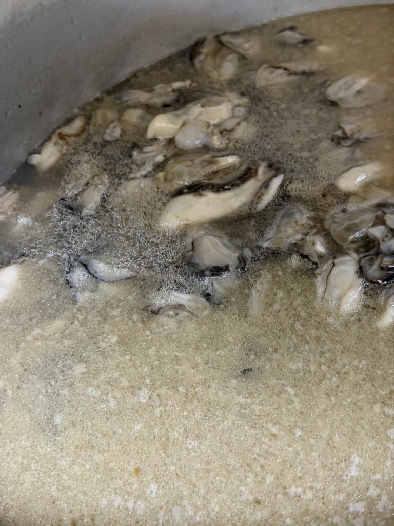 六白黒豚げんこつと広島牡蠣を大量に使ったスープです。 年越そば2026 原具入りスープ(豚ゲンコツ、牡蠣、 鯖節、宗田節、昆布、醤油、みりん ホタテ、エビ、チャーシュー) 自家製麺:小麦粉、食塩、かんすい、 でんぷん(打ち粉)